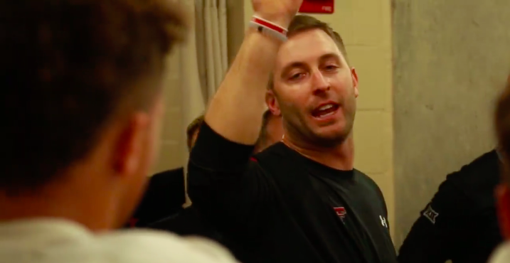 Take a look as Coach Kingsbury awards two game balls in last night’s emotional post game locker room after Tech’s 48-45 win over Texas.
