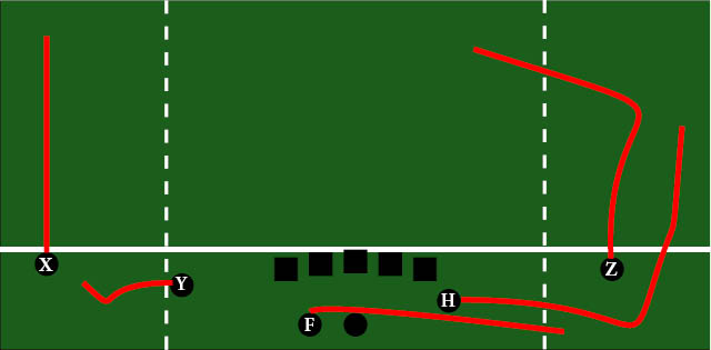 When I mentioned that this was a staple from Run & Shoot offense, I was referencing the route combination on the right side of the formation, the (flat) post and the wheel route behind it. It is testing the defense and how the defensive backs on that side of the field react to players crossing their face and how the two deep safeties respond to a receiver splitting between them.