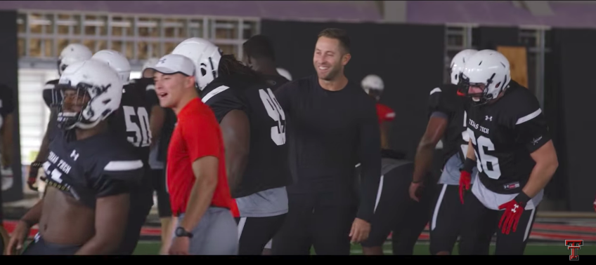 . . . talks with Michael Mays while warming up . . . talks to a receiver and says he’s got a whole package for him (maybe T.J. Vasher?) he’s just got to work hard and catch passes after practice . . . Mych Thomas, getting hit with those DM’s after his dance performance . . . defense talk . . . talks about Dom Panazzolo’s ability to put the ball on the 6″ yard line . . . lots of defense talk and complimenting Mych Thomas . . . encourages d-line and special teams . . . coaches quarterbacks and how to move in the pocket (especially McLane Carter) . . . talks to Jamile Johnson (don’t know who K-Mo is) . . . also talks about how the special teams is going to have serious swag this year (this thought alone is pretty incredible to consider) . . . 20 push-ups if they get in the net and Nic Shimonek makes it (push-ups are very short).