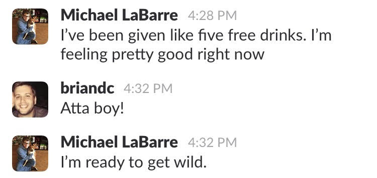 Michael LaBarre: Depends which day you’re talking about. Thursday, myself and a friend of mine road the TRE train from my (and Beard’s) hometown of Irving to the Big D and had lunch with my mom at this bar in the West End called Gators. I don’t get to see her that much, so it was nice to enjoy a meal with her while watching basketball. I had some red beans and rice that I thought about for the rest of the day.
