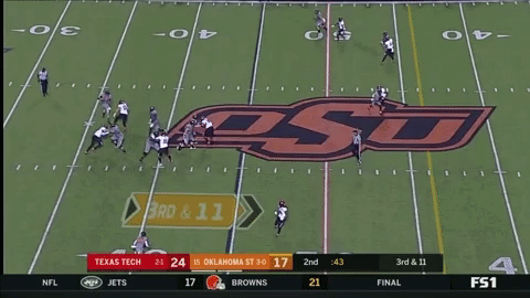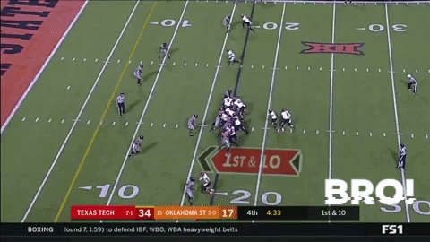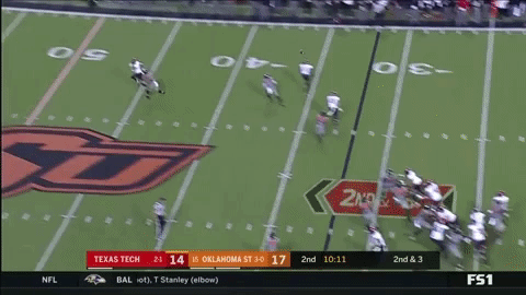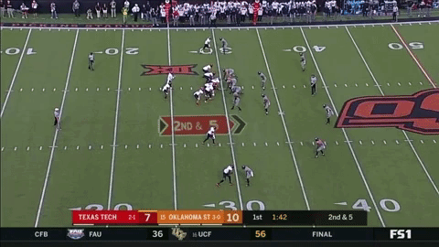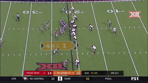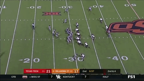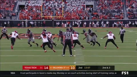 Kliff has grown up my friends. This is NOT a “typical Tech” team. I know that thought was difficult to avoid after the Ole Miss game, but they are slowly but surely proving themselves on all sides of the ball. The arrival of Kevin Johns seems to have added a sorely-needed missing piece to this team. He installed run blocking schemes and has apparently improved the communication between the Kliff and the booth. It is obvious that Kliff’s play calling, game management, and clock management have improved dramatically. We’ve heard stories of strife between Kliff and Eric Morris, so maybe a change was all he needed to improve his game flow. Houston and now Oklahoma State have been two of the best-called games I can recall seeing from Kliff Kingsbury. Kevin Johns commented that he’s never seen anyone see so much of what’s happening from field level as Kliff, well maybe Johns’s perspective and experience has been the x-factor he needed. I’ve noticed three things in particular.