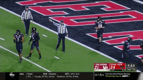 Once again the Red Raiders seemed like two different teams from one half to another. We saw defensive pressure, run defense, interceptions, and strong offensive production in the first half. Then, everything changed. I don’t know if it can all be blamed on injuries but they certainly didn’t help. Bringing in Jett Duffey in the second half undoubtedly stalled the Red Raider passing attack. Couple this with Travis Bruffy missing time and we saw more pressure on the quarterback and sacks. The defense lost Dakota Allen and the Oklahoma run game went wild in the second half finishing with over 300 yards rushing. Coming into this game the Sooners averaged 305 yards rushing over their last six games against the Red Raiders.