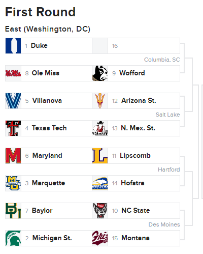 Per CBS College Hoops expert Jerry Palm, Tech would get New Mexico State in Salt Lake City… I’m going to call out an error here and let you know that CBS screwed up and put Salt Lake City, the game should be in Jacksonville for the East bracket. The second round in this scenario would be Villanova. How satisfying of a game would that be to watch the Red Raiders get a chance to knock Nova out after what happened last year?