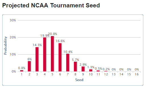 One of my favorite metrics websites is TeamRankings.com, and they have Texas Tech as the most probably #5 seed at 20.8%. Though the #4 seed probability is very close at 19.9%.