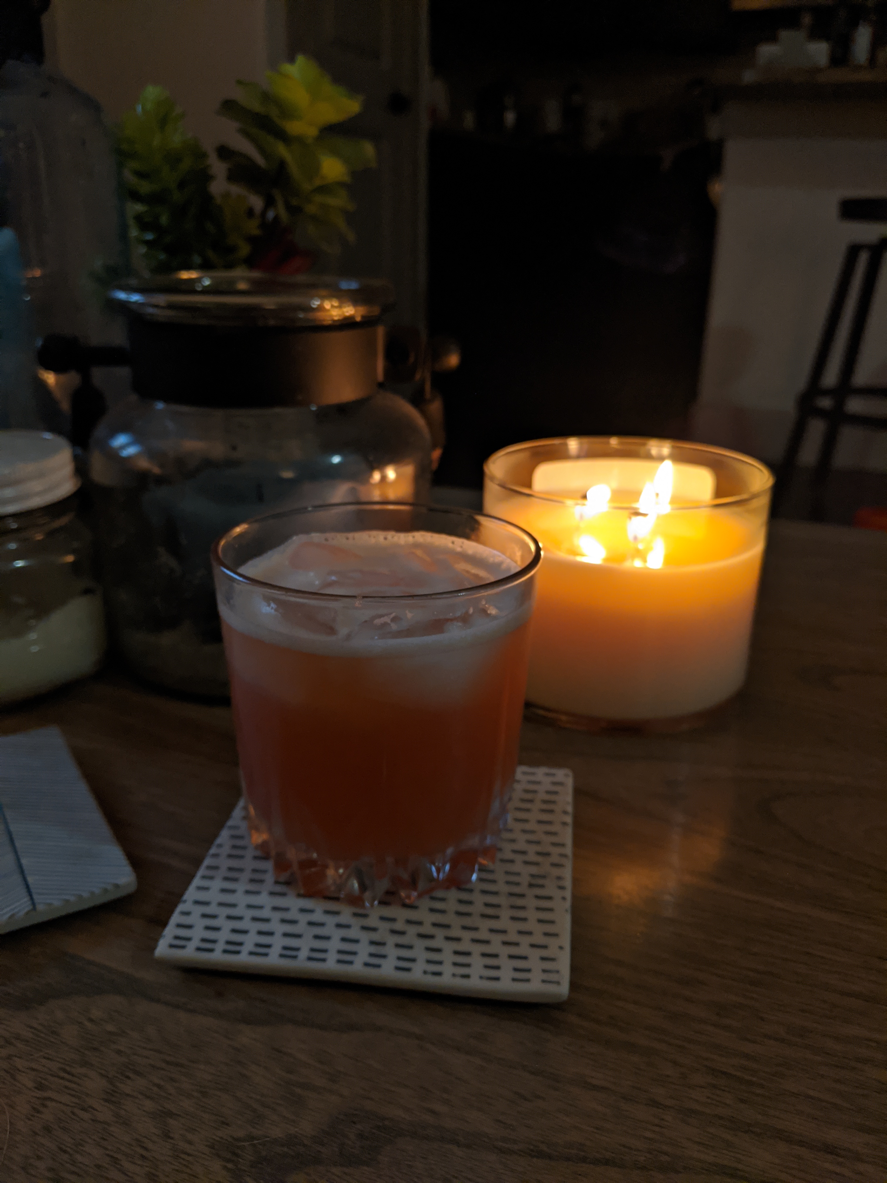 Quintessential tiki and easy to make, adapted from this recipe. A note on orgeat: use the suggested amount or even pull it back a little. I find the almond strong to overpowering, so it may take a few times making this to find your perfect balance. If you don’t have orgeat, you can sub in for an almond syrup from the coffee aisle (bootleg!)