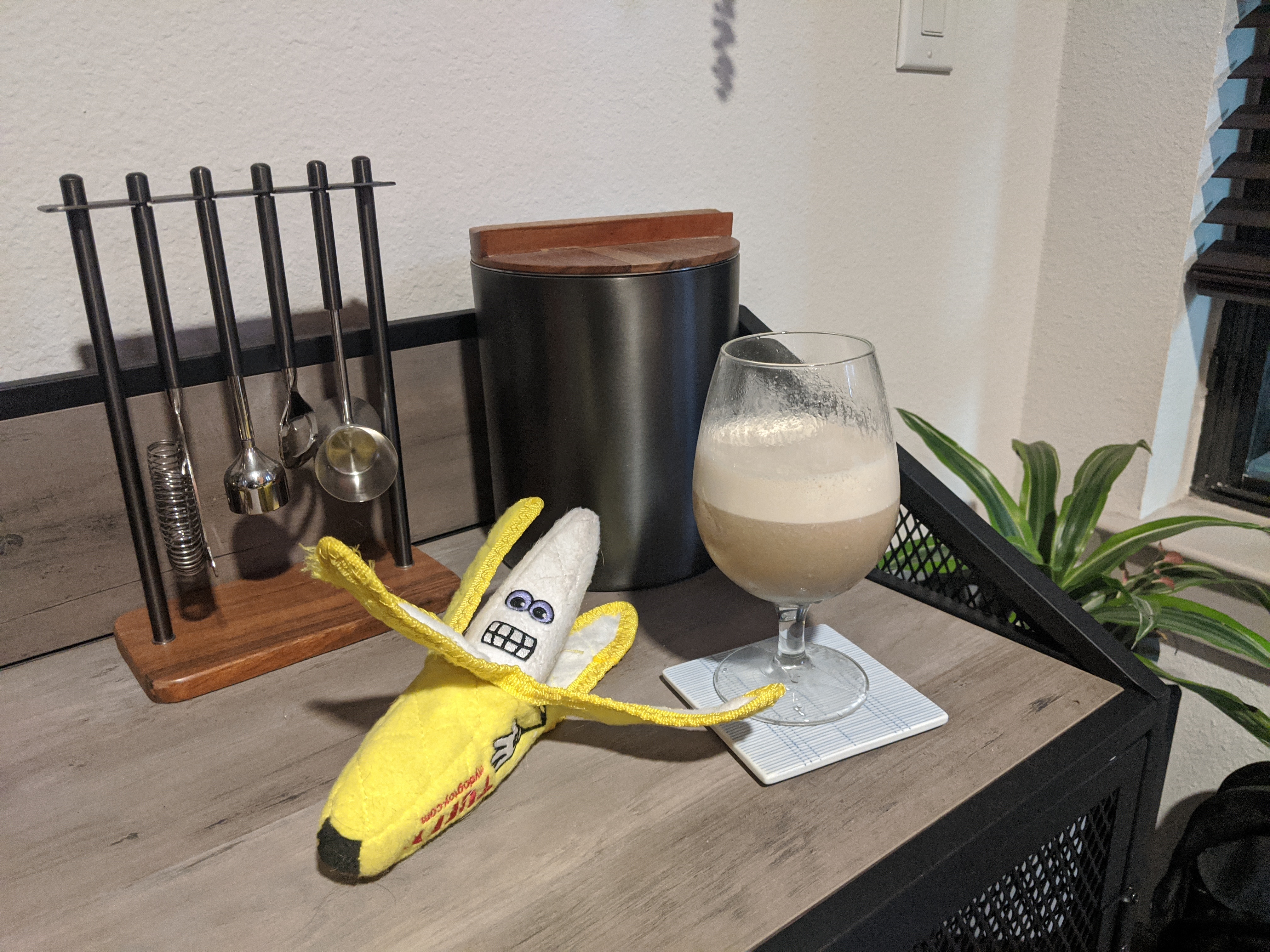 The Dirty Banana is our go-to drink at the Lei Low, and even though it’s off-menu now they’ll still make them for you if you ask nice. When I decided my hobby during this time would be exploring tiki, I knew right away this would be at the top of the list. However, the issue is there isn’t a solid, universal recipe for this drink. As it toes the line of a boat drink, Dirty Bananas are often found in resorts, so most recipes you find will vary the ingredients greatly, sometimes even excluding rum (perish the thought). It was up to me to figure out the optimum recipe based off a skelton of known ingredients: rum, coffee & chocolate liqueur, and banana.