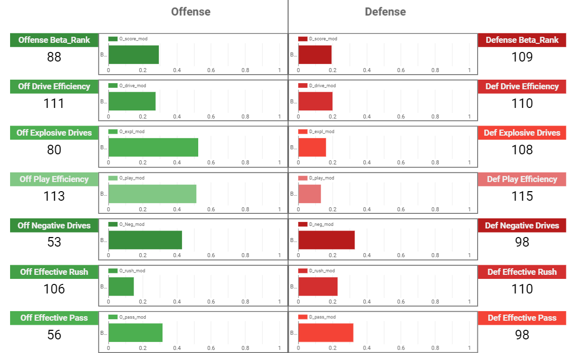 Sharp College Football Beta Rank Deep Dive: Baylor was very middle of the road last year (hence the change at offensive coordinator), the best thing that they did is throw the ball and would expect that to continue, but they’ve got to be better running the ball if they want to experience any success and they just weren’t good by any metric. The defense wasn’t much better (hence Aranda calling plays), couldn’t defend the pass or the run and too many explosive drives allowed.