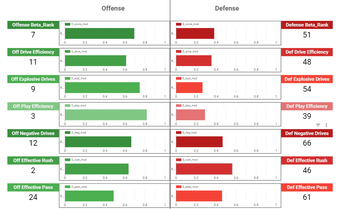 Sharp College Football Beta Rank Deep Dive: Kansas was unbelievable on offense. Incredibly explosive and efficient, all largely without Jalon Daniels. An absolutely stellar rushing team and an excellent passing team to boot. You wonder how much the success was Kotelnicki and if Grimes can continue that success. Grimes didn’t have the same type of success he had at BYU while at Baylor, but maybe Leipold let’s him cook on his own. Defensively, they were top third in the nation, which is really pretty good all things considered. Better against the run than the pass, this is a solid group, but with just 6 defenders returning, not a ton of continuity from this year to last year.