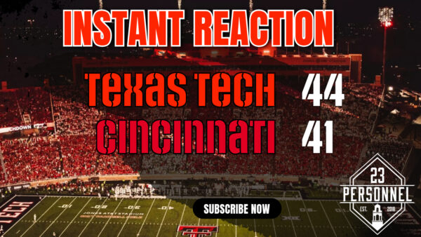 Spencer reacts to Texas Tech taking down Cincinnati 44-41. Sometimes it’s better to be lucky than good, I guess. xIn this episode of the 23 Personnel Podcast, host Spencer discusses Texas Tech’s thrilling 44-41 victory over Cincinnati in Big 12 play. He analyzes the team’s performance, highlighting both offensive strengths and defensive weaknesses, while also […]