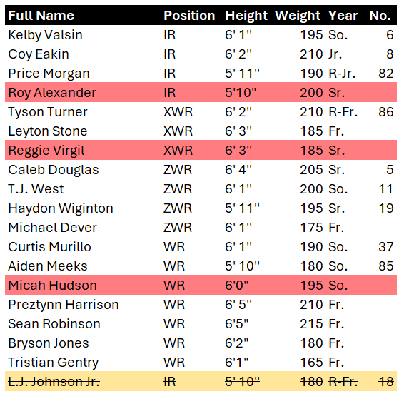 Terrance Carter, Jr. and Johncarolos Miller II are the front-runners to start and with Miller being a senior, it allows for a good transition with Carter and then eventually Jackson. The problem is that I don’t think that Miller and Carter are truly blocking tight ends. Llewellyn has the size to be a blocking tight end, but I don’t know if he fits the bill. I do recall Joey McGuire saying that Llewellyn is an elite deep snapper, although I don’t know if that’s all he will do or if he will contribute at other players on the field.