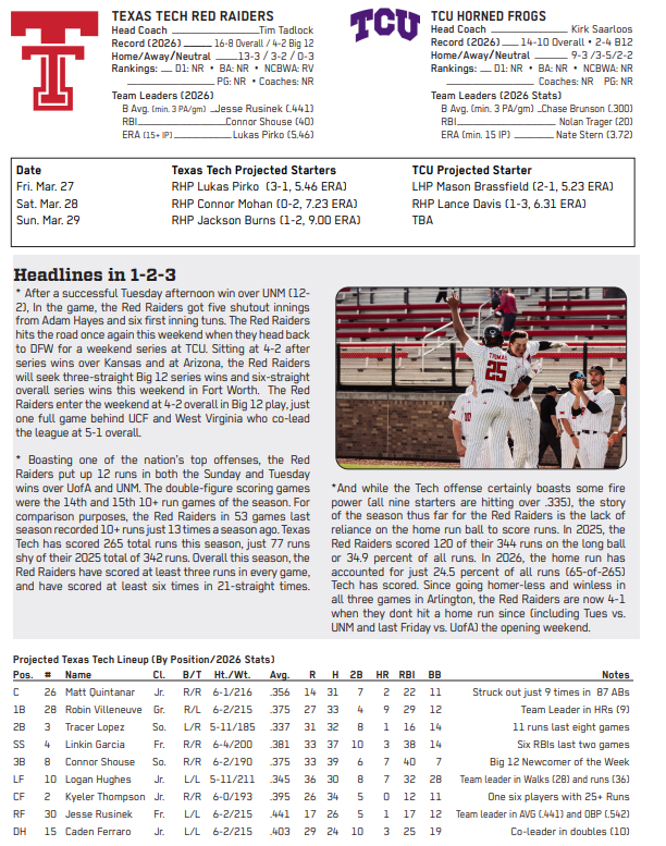 Good Guys: Texas Tech Red Raiders (16-9, 4-2)